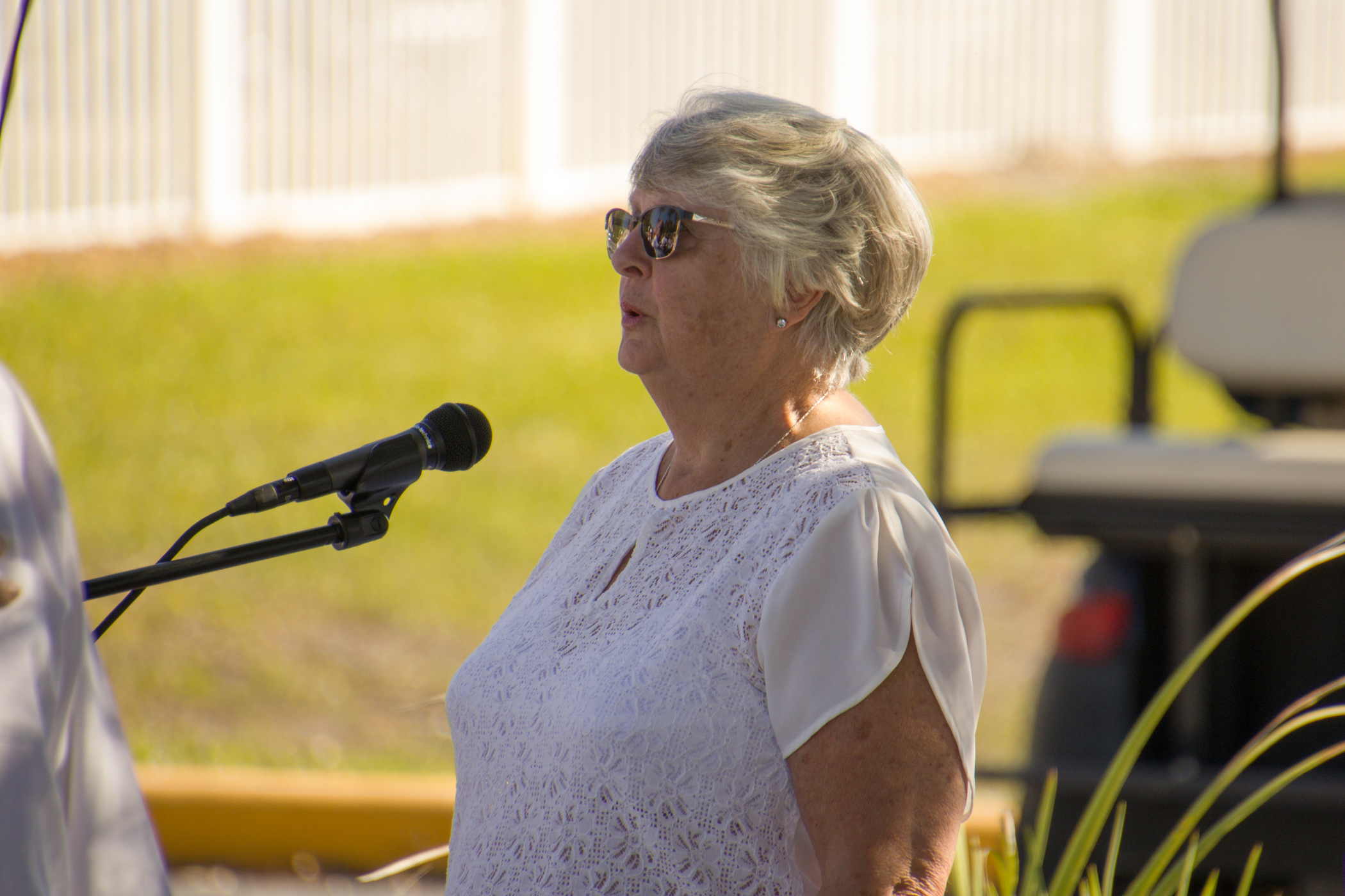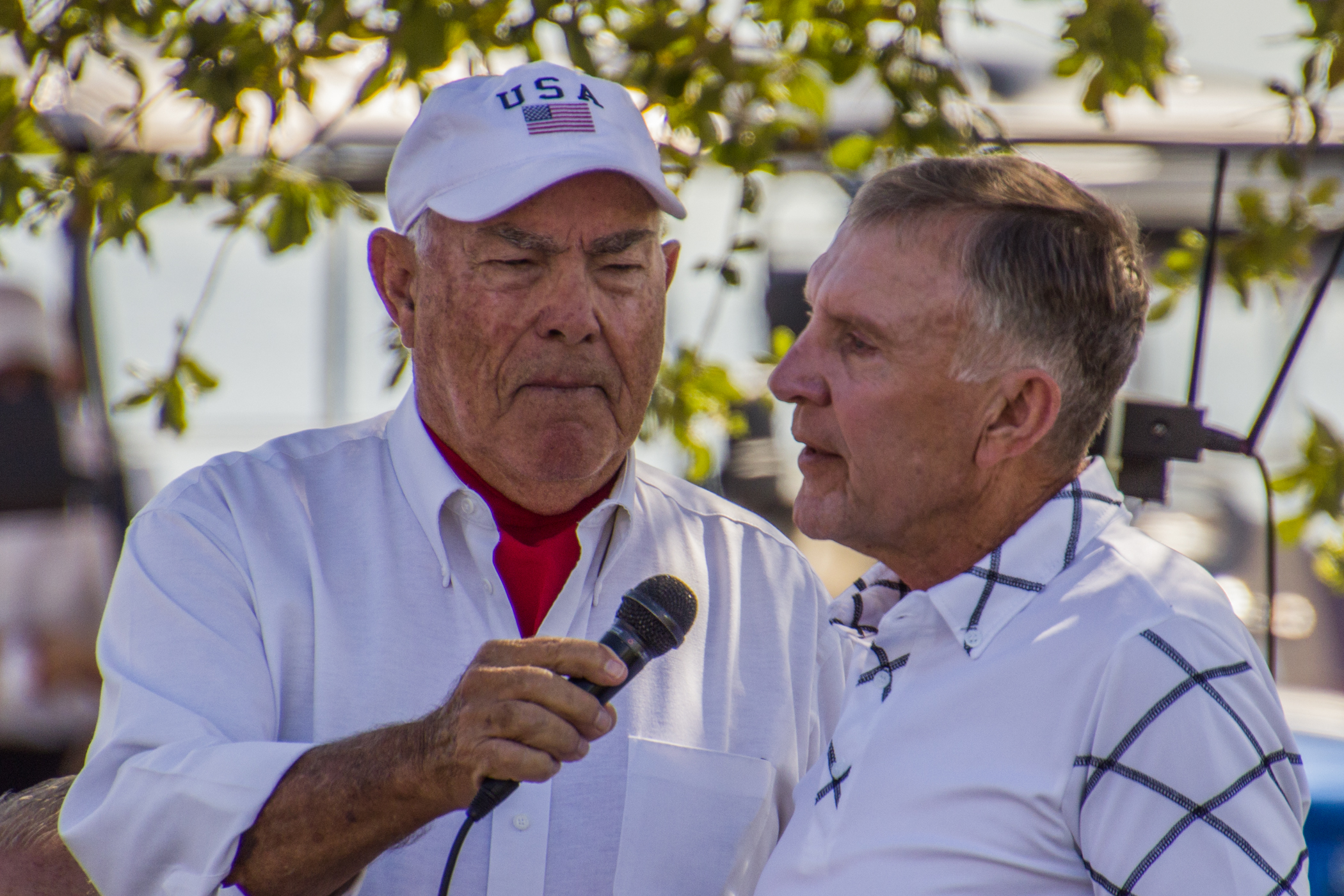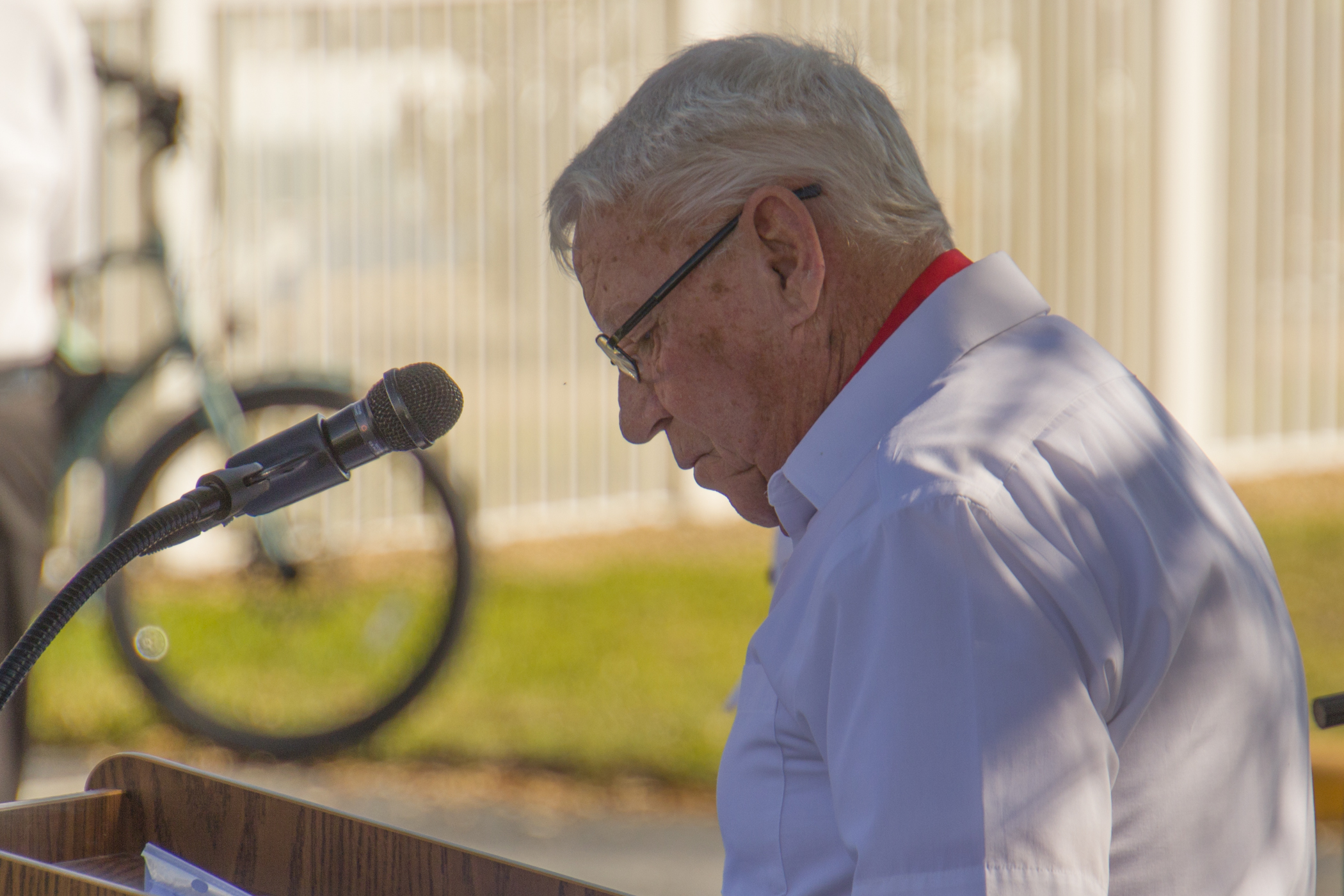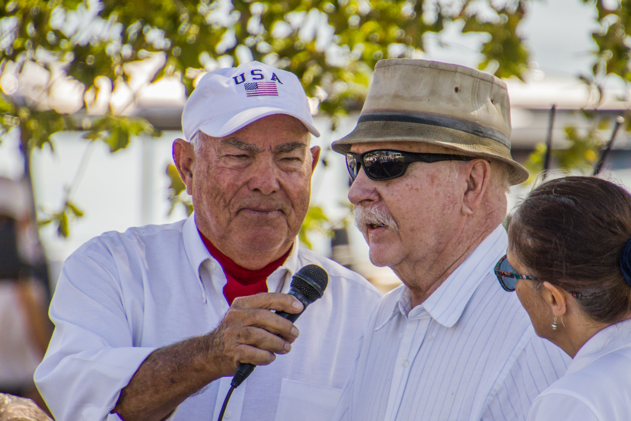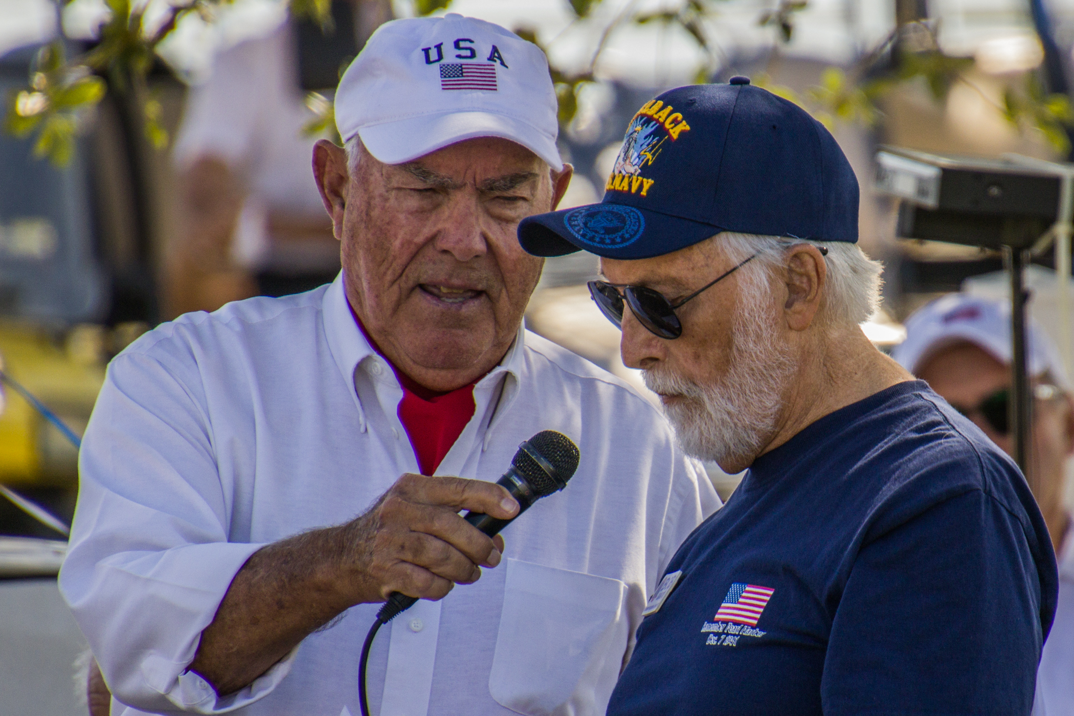 Just prior to the beginning of the event, one of our Bald Eagles flew over the gathering and perched magnificently in a pine tree by the lake, looking with anticipation at what was about to happen. He remained there through part of the ceremony, flying back over to the nest near the time of the honoring of the POAs/MIAs.