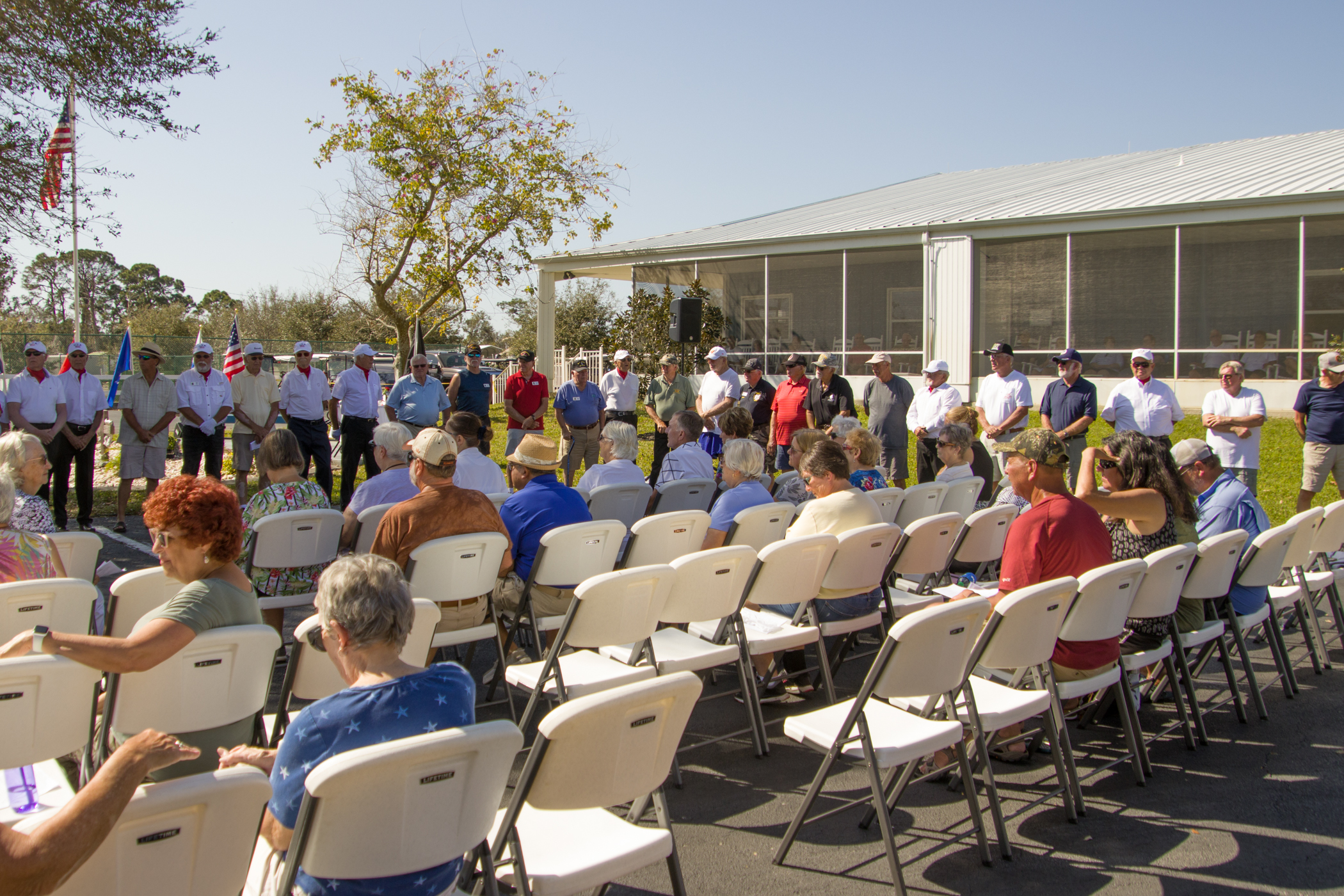 The annual Camp Florida Ceremony honoring our Veterans and celebrating the lives of those relatives, friends, and neighbors we have lost over the past year was held at 10:00 a.m. on Monday, February 20. (Click here to download a copy of the program.)