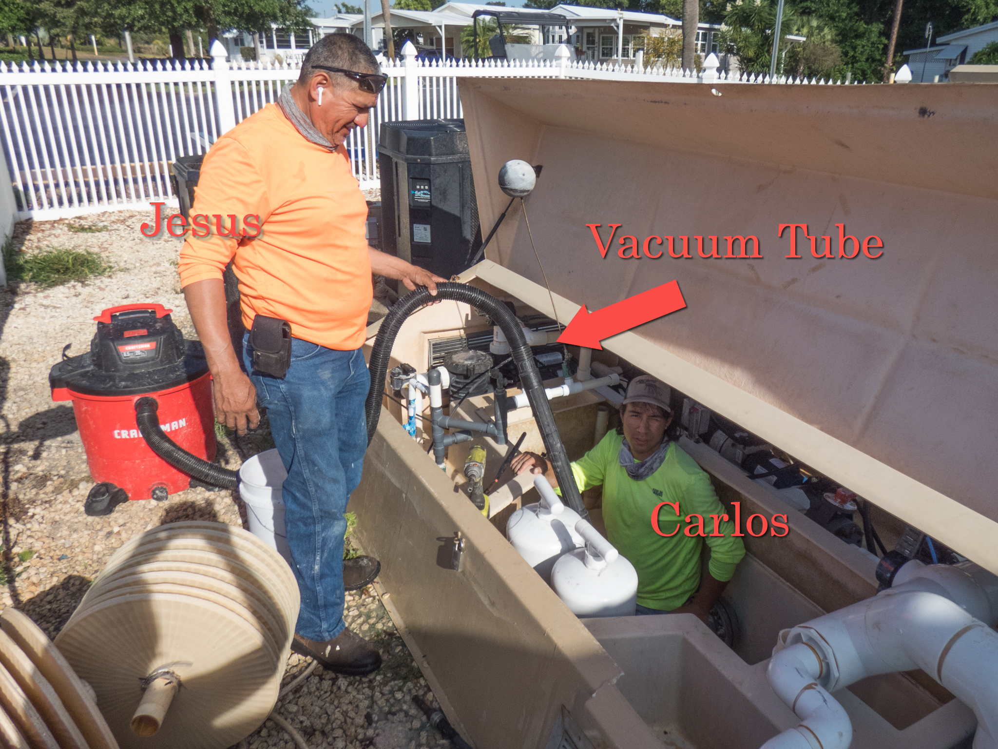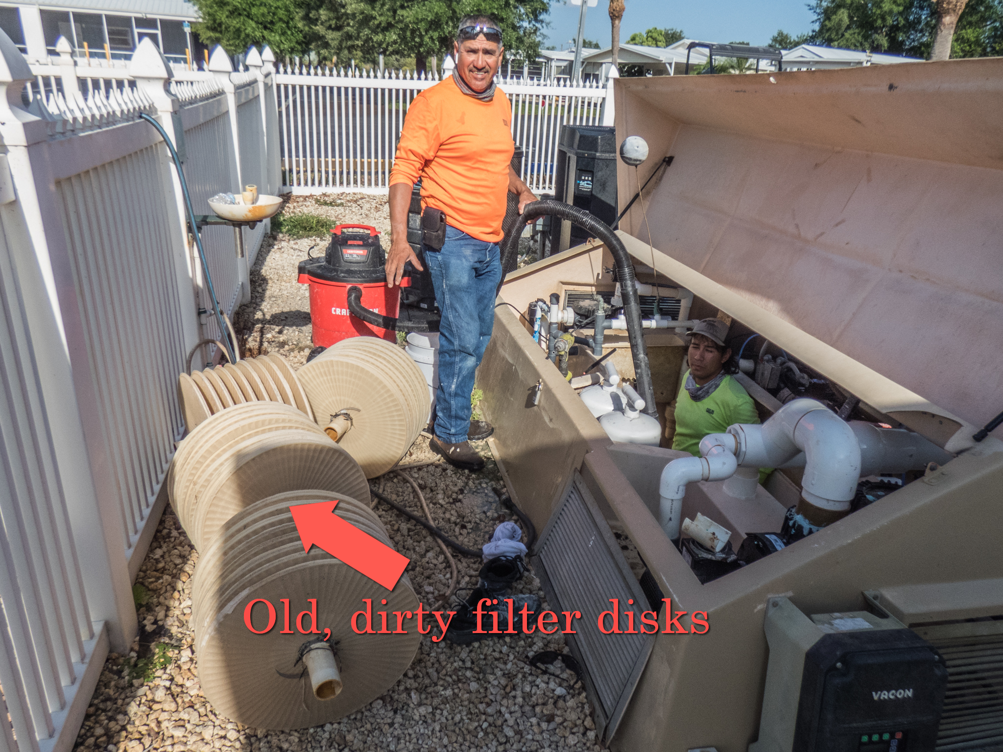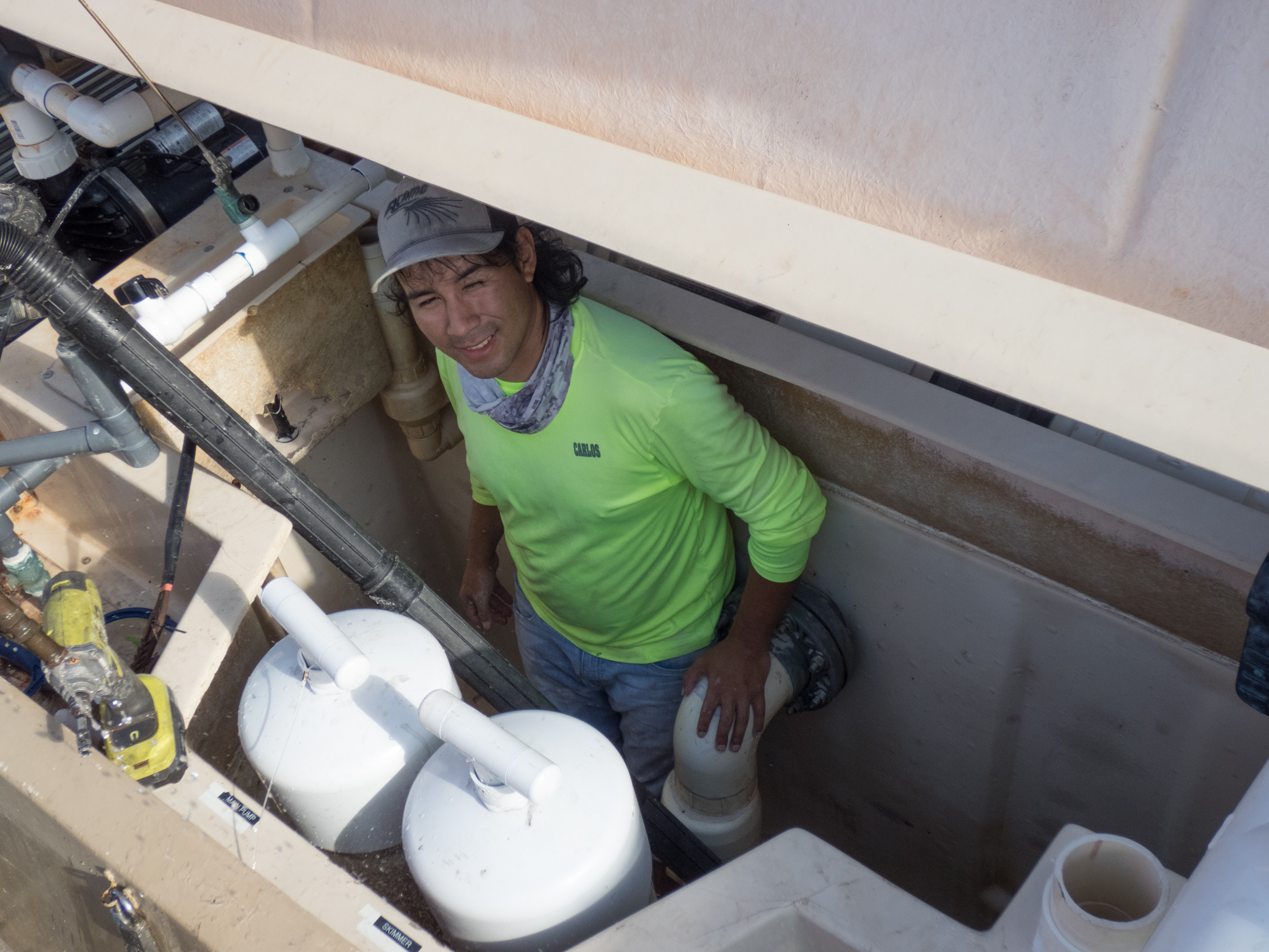 Last week, Carlos and Jesus were changing and cleaning the pool filters. It is quite a task, and I think a little scary to be Carlos down in that pool filter hole!