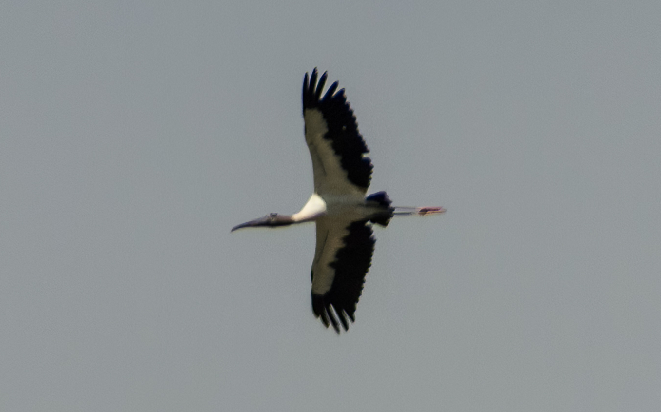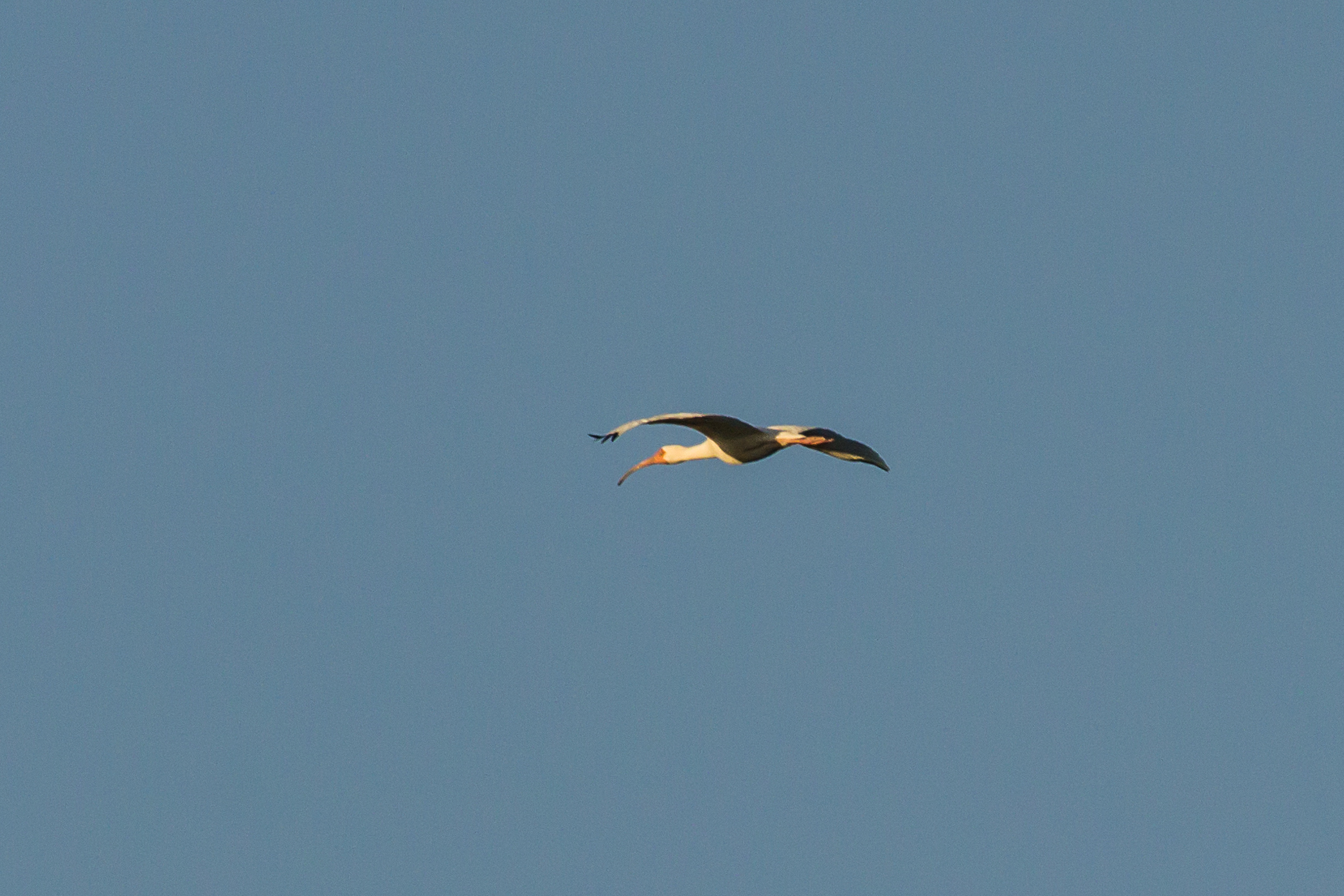 Look even higher, up to the sky, if you want to catch a glimpse of some White Ibises flying overhead in the evening. Large flocks of Black-bellied Whistling Ducks navigate over the lake quite often. Wood Storks are not as common, but they are easy to identify as they soar by. Of course, there are the Turkey Vultures and Black Vultures up there almost all the time.