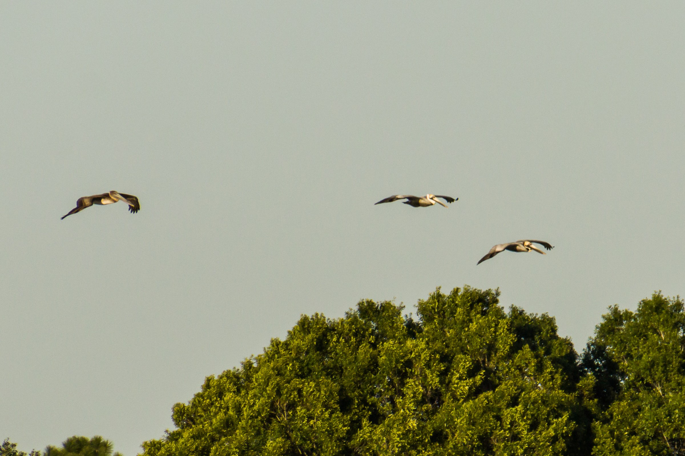Brown PelicanBrown PelicanBrown PelicansThree Brown Pelicans!Sandhill CranesWhite IbisCurious MockingbirdWood Duck pairGreat Horned OwlGreat Horned Owl