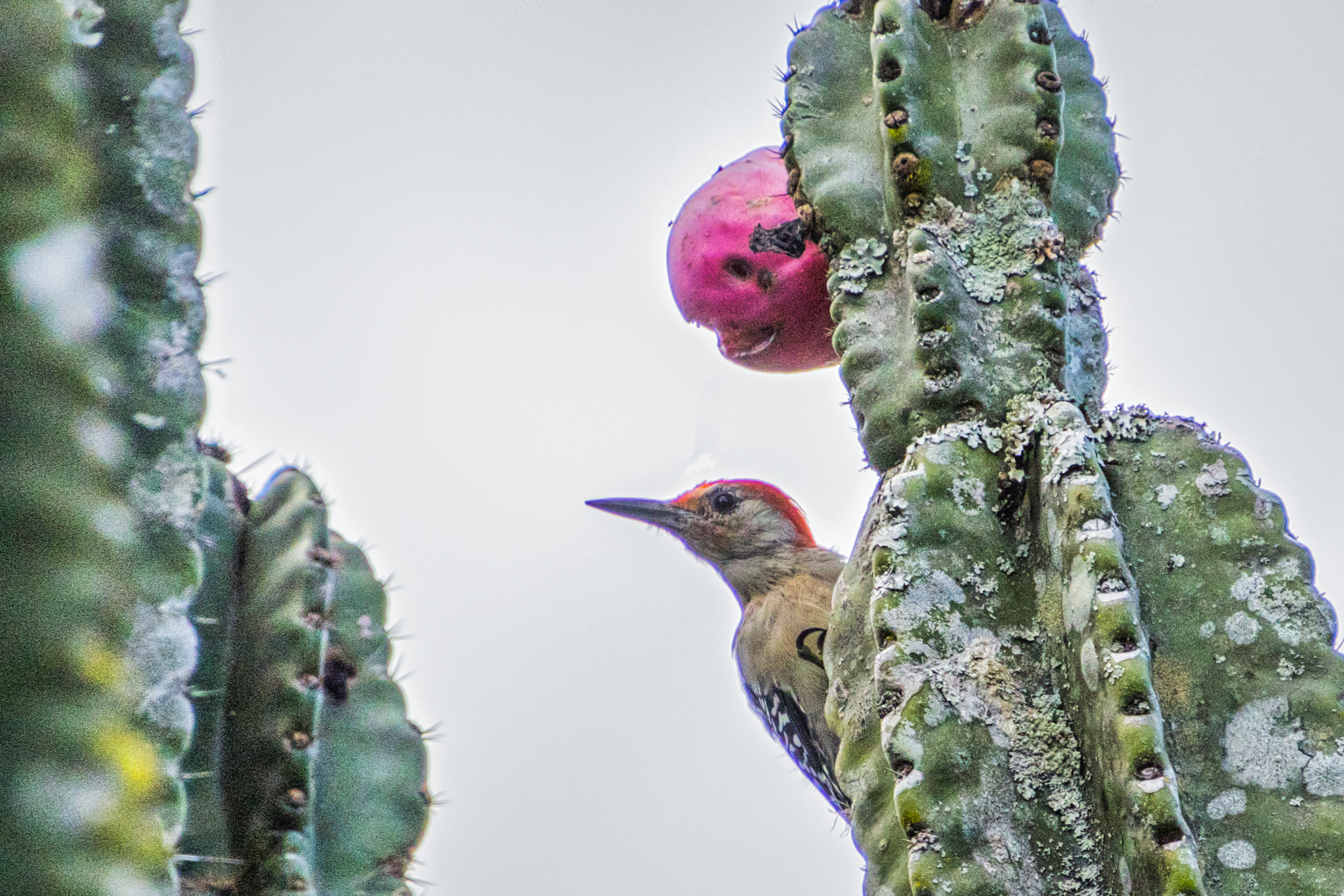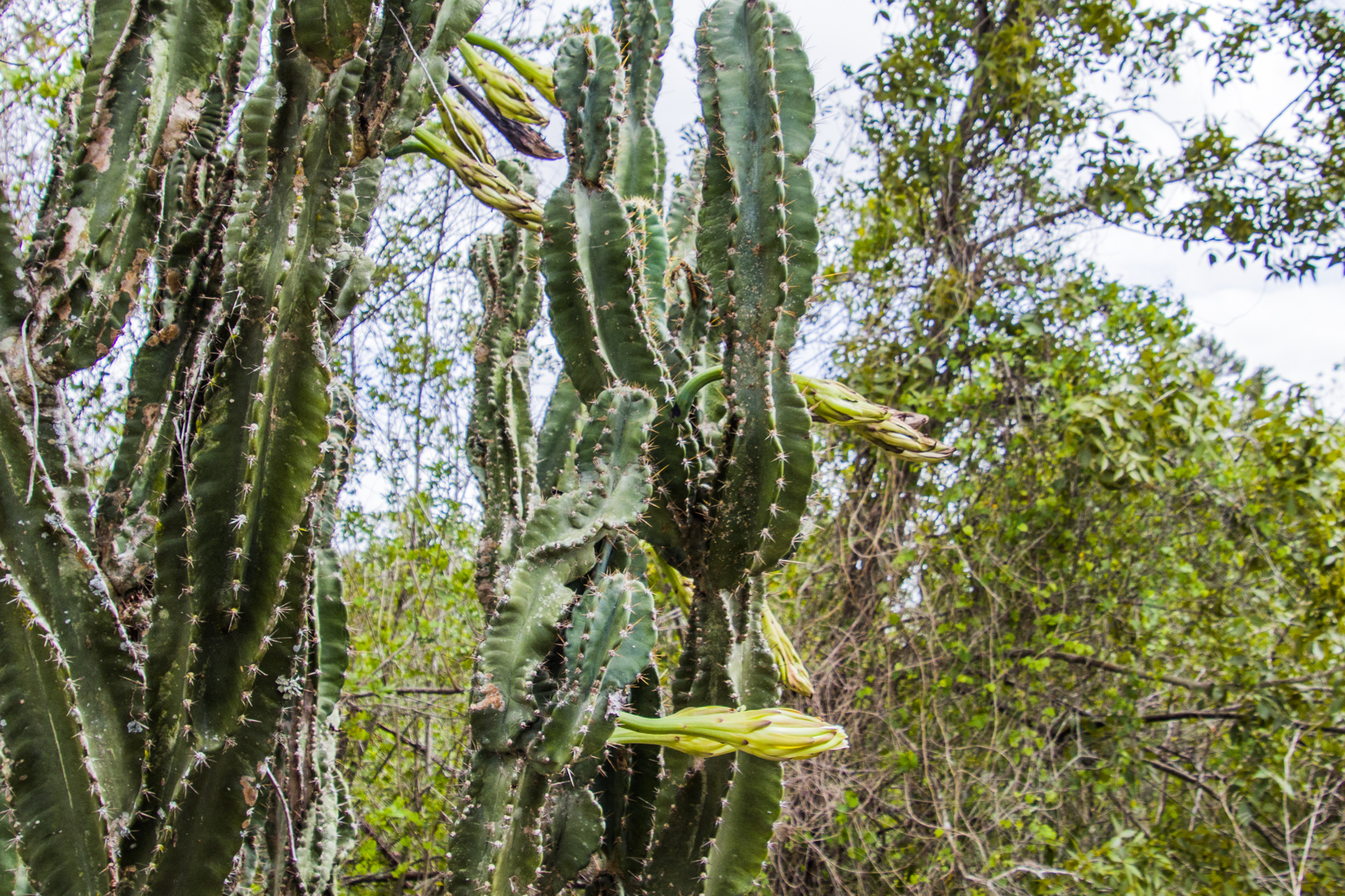You might wonder what happens to these blooms. Well, they are pollinated by moths and bats, and once pollinated, they produce red apples that Red-bellied Woodpeckers just love! (Apparently, some people find these tasty, also, but we don’t know anyone who has tried them…). If they don’t get pollinated, the flowers simply die.