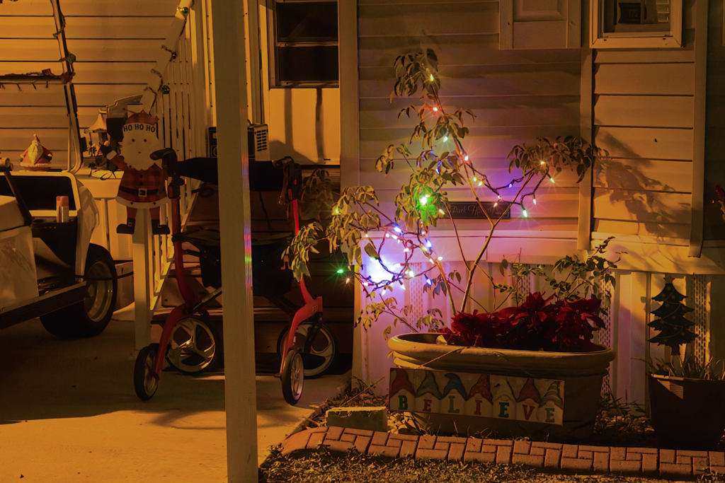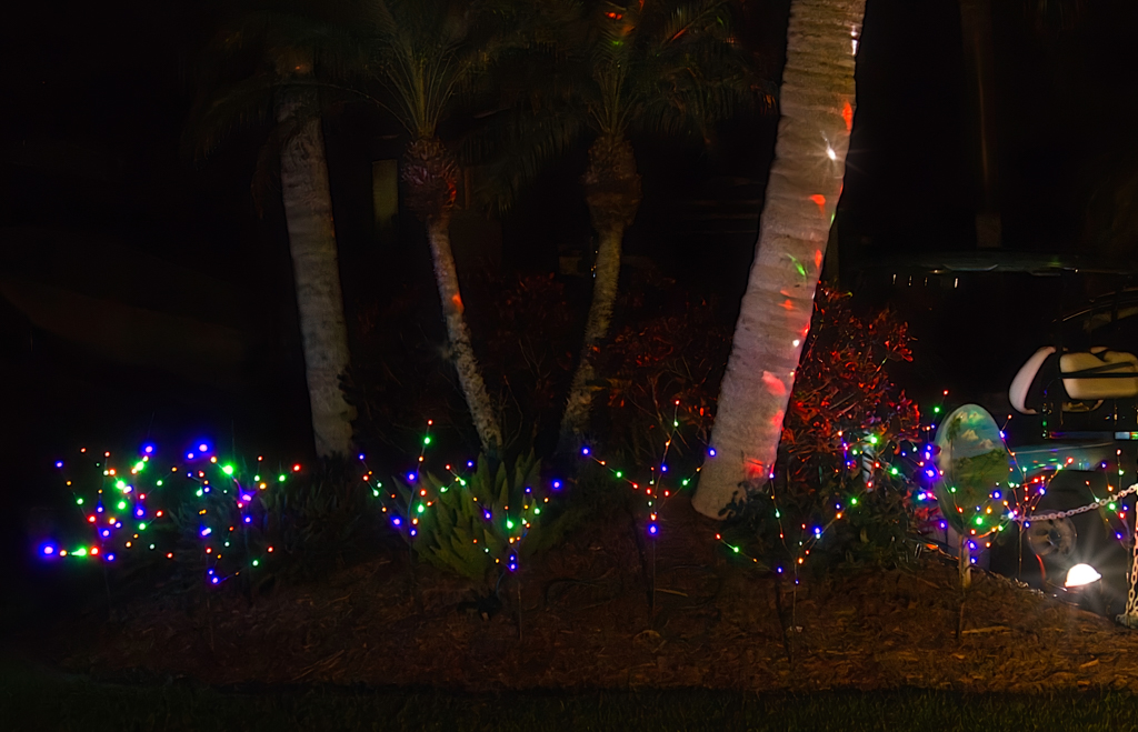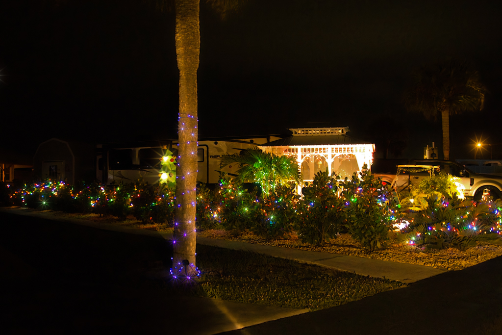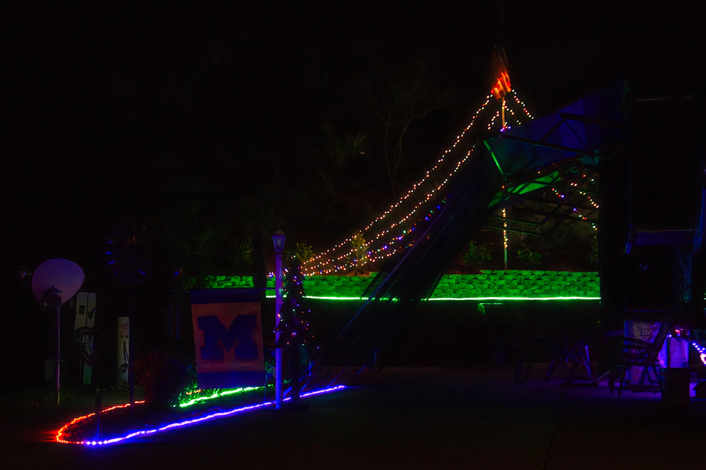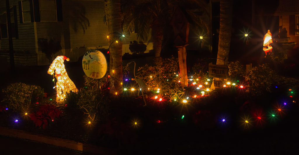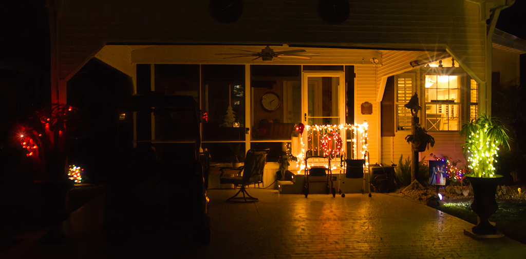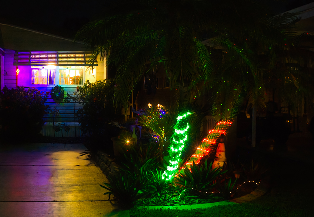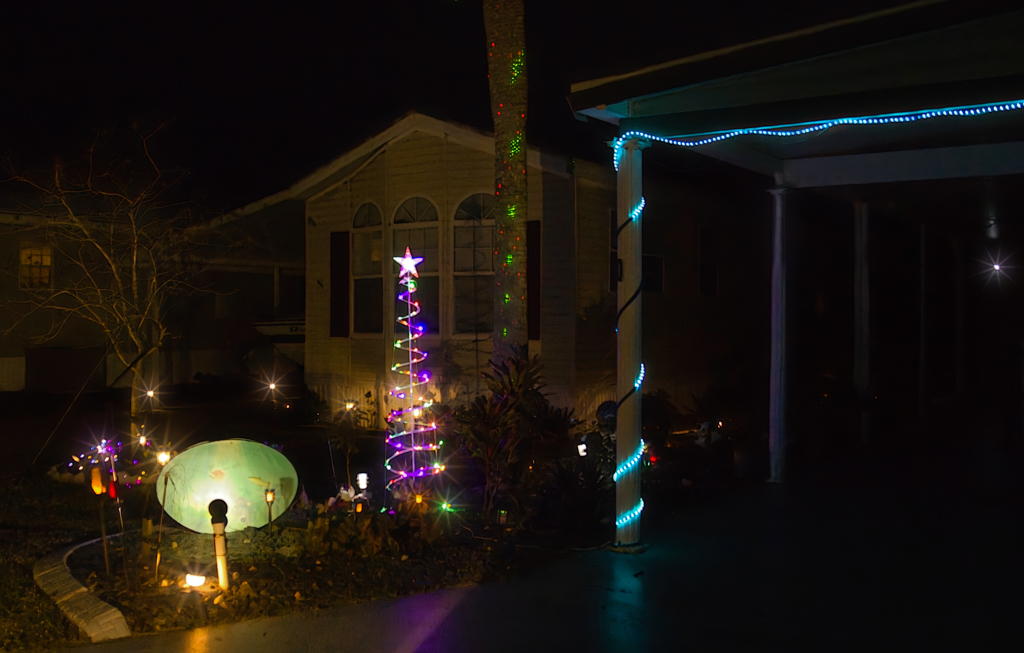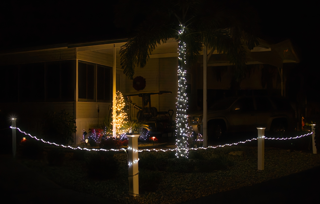 I thought I could spend an evening taking photos of all of the beautiful Christmas lights throughout our lovely community. Well, I was partially right… I did spend an evening, but I only got through about half of Camp Florida before the mosquitoes about bit my ankles off and I could no longer hold the camera up to take the photos.