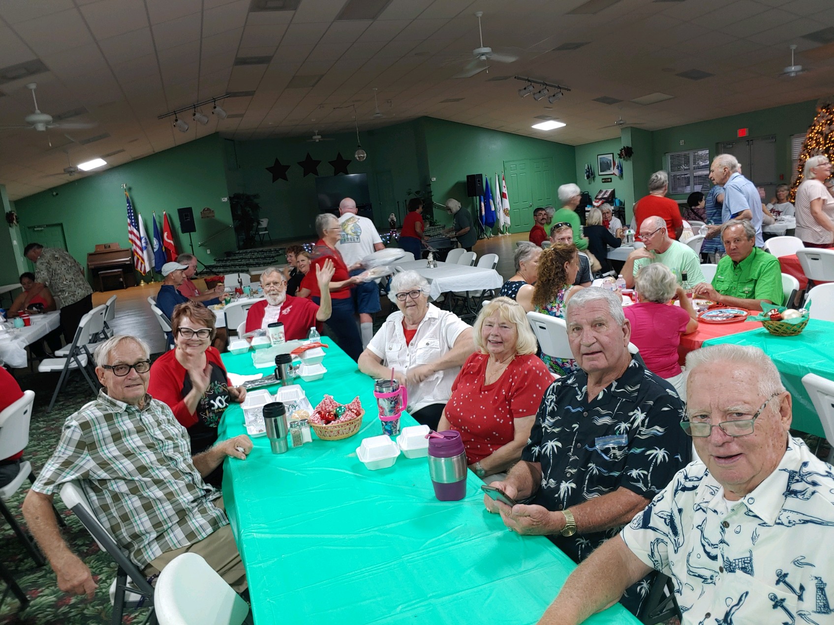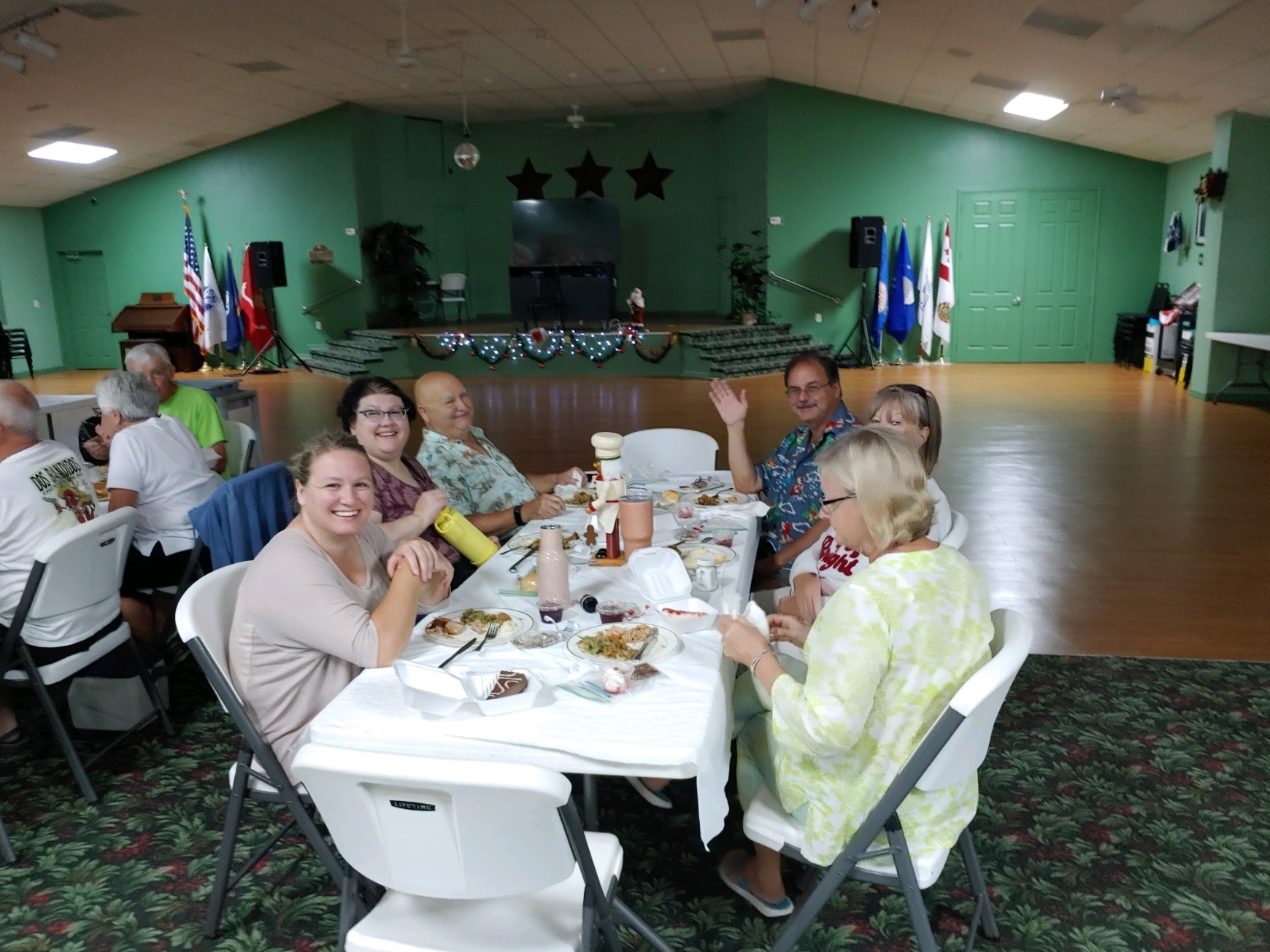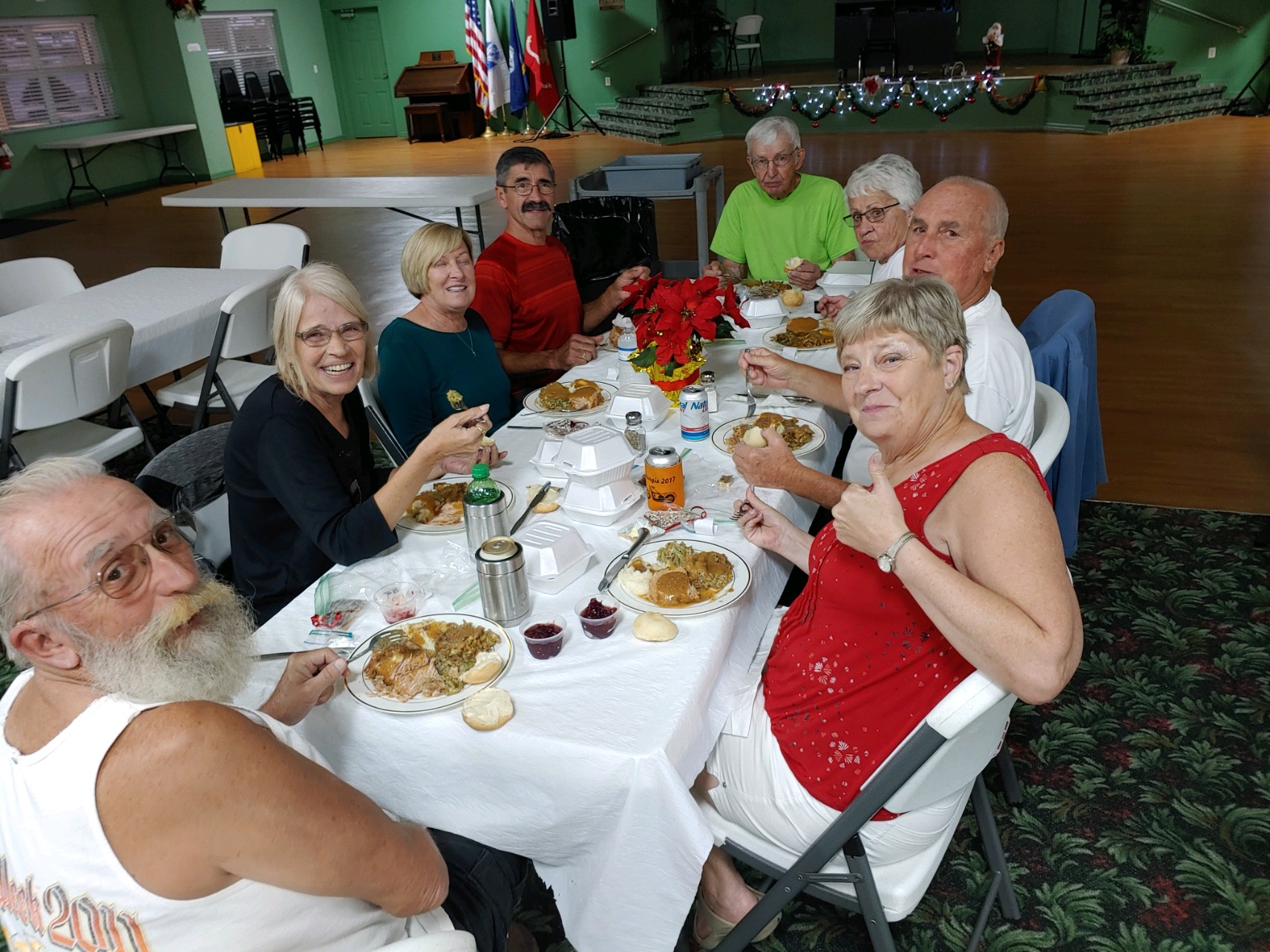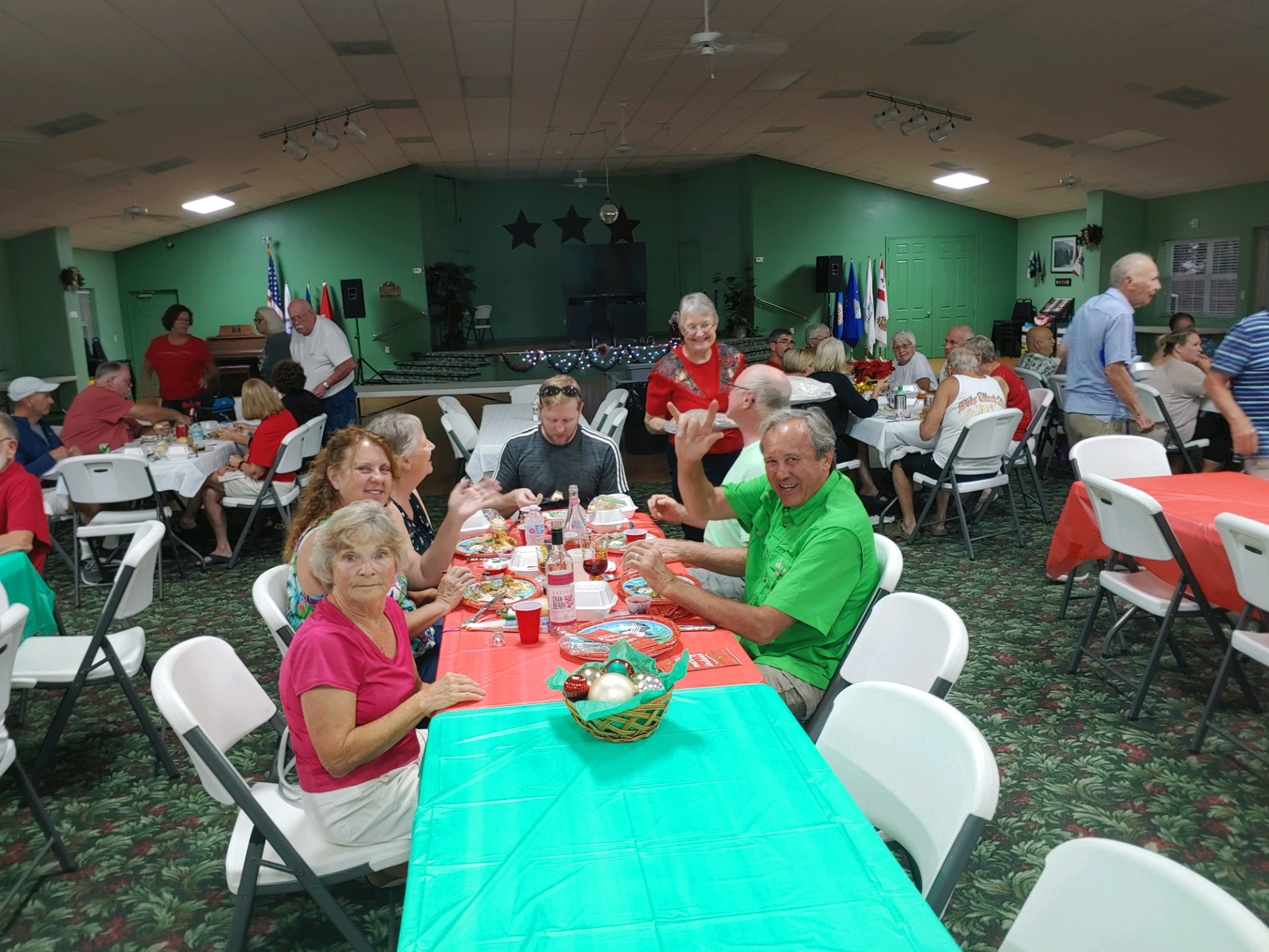 Christmas Dinner at Camp Florida was a hungry persons delight. It was a time for friends to gather together and enjoy each others company while enjoying a deliciously prepared meal. Over 150 tickets were sold for this years event. There was even time for a few smiles in between bites!