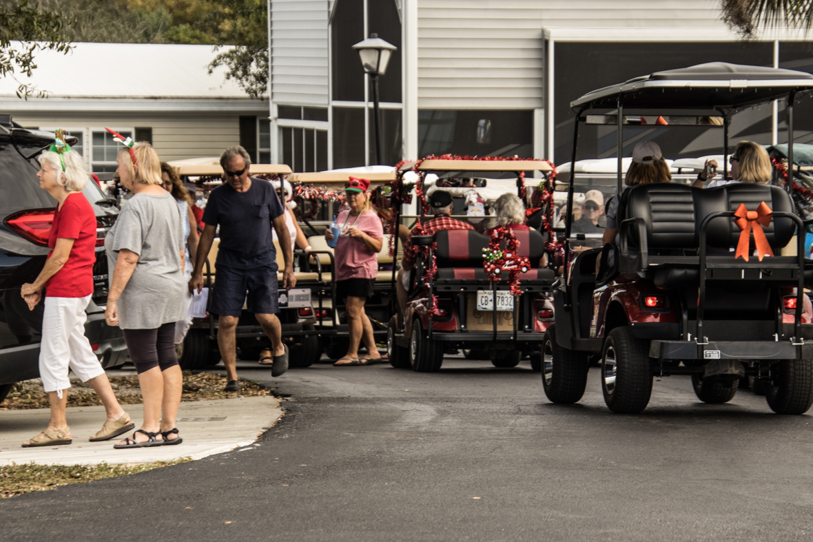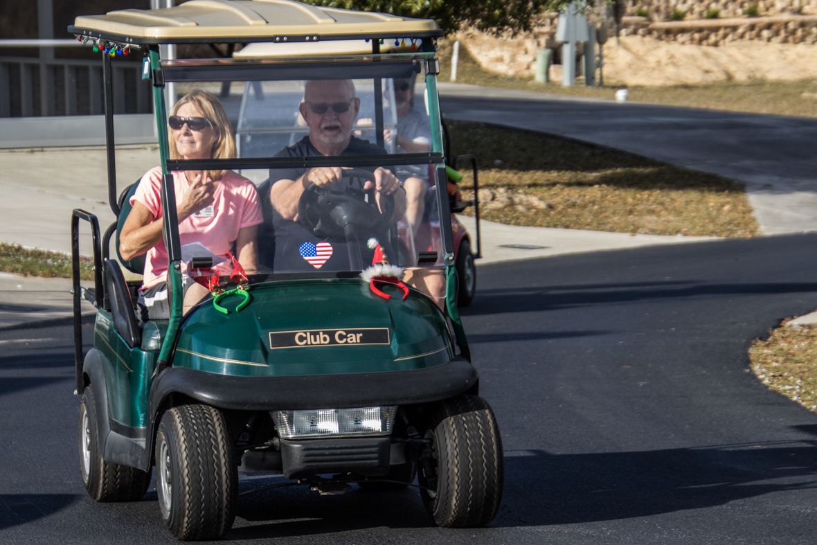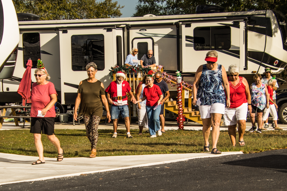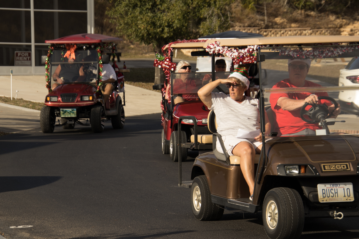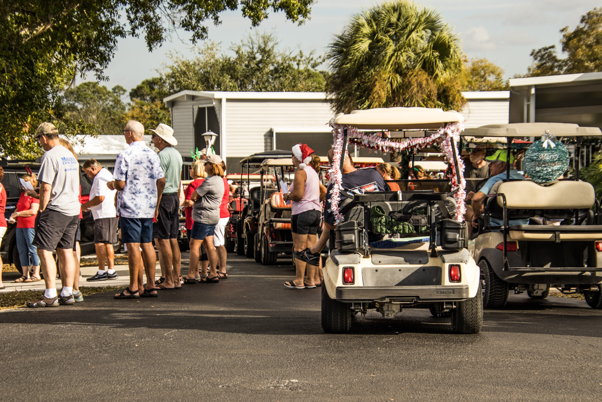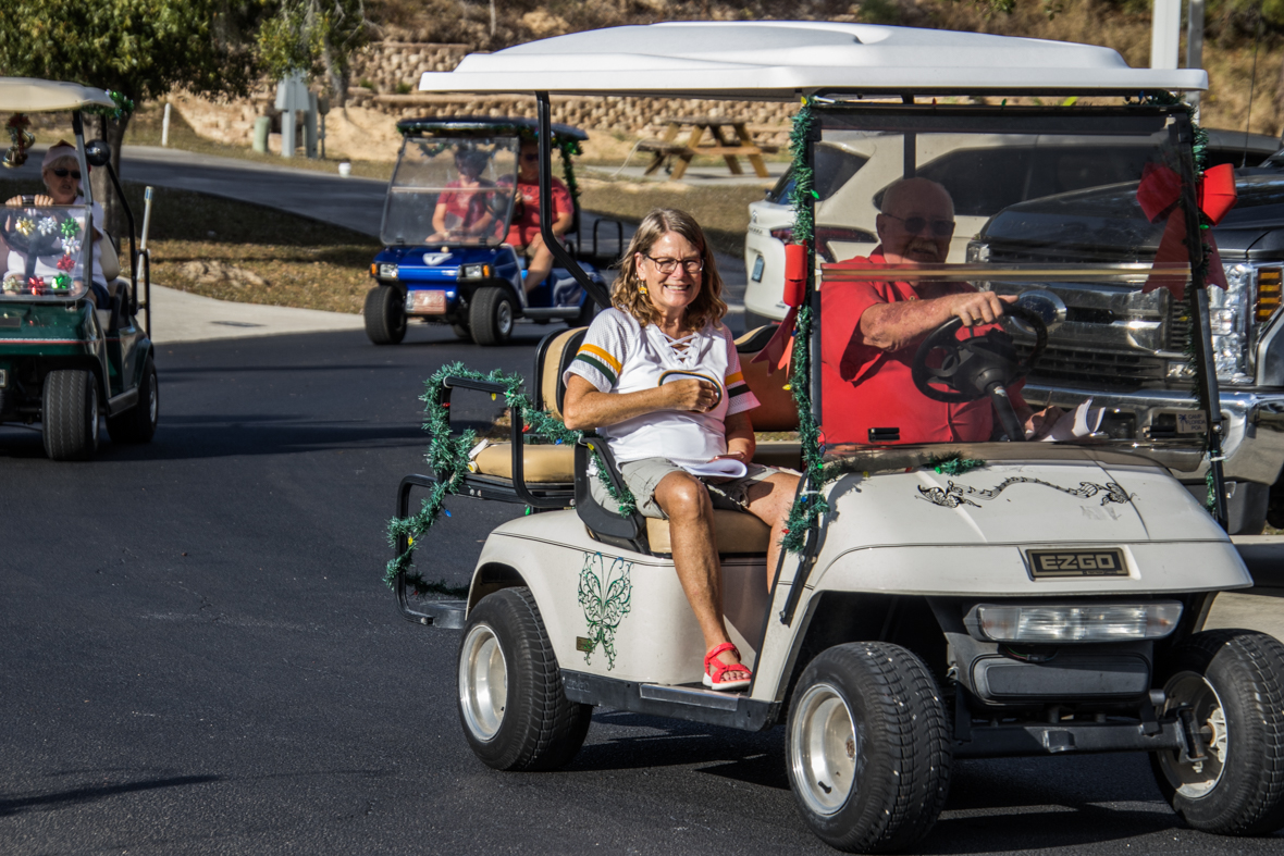 December 19th was a special day for Camp Florida! Many of our property owners and guests dressed up in their Christmas garb and decorated their golf carts to participate in the annual Christmas Caroling Parade. Songs of Christmas filled the air as these folks treated each circle to Christmas favorites, ending with “We Wish You a Merry Christmas.”