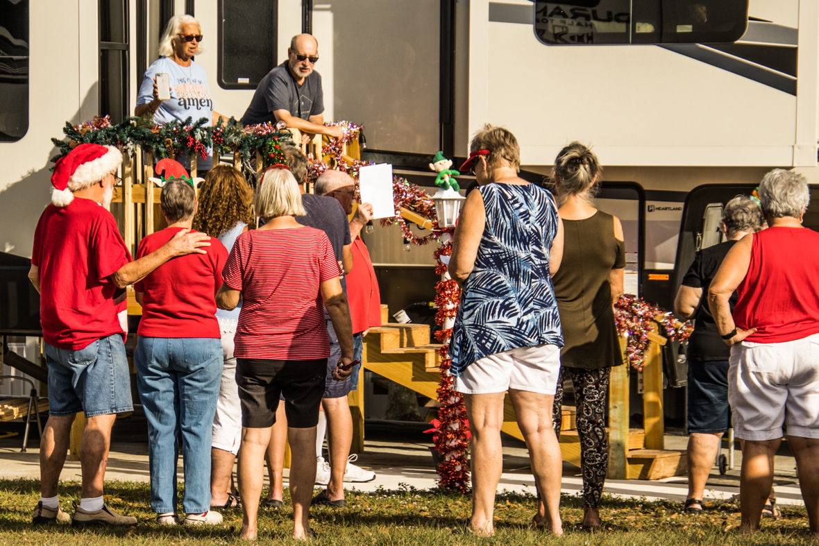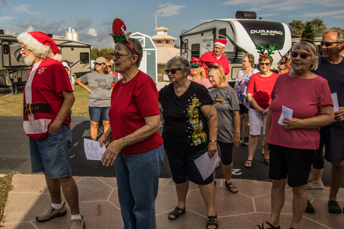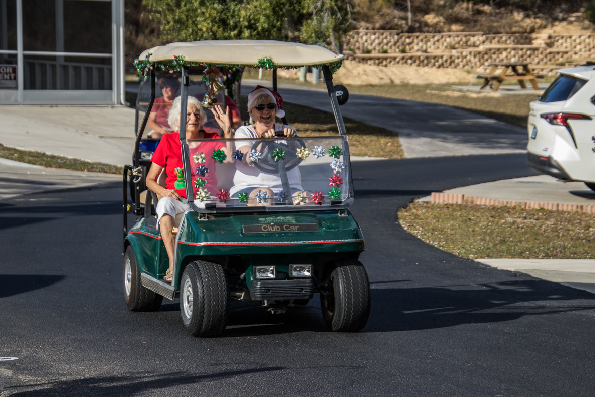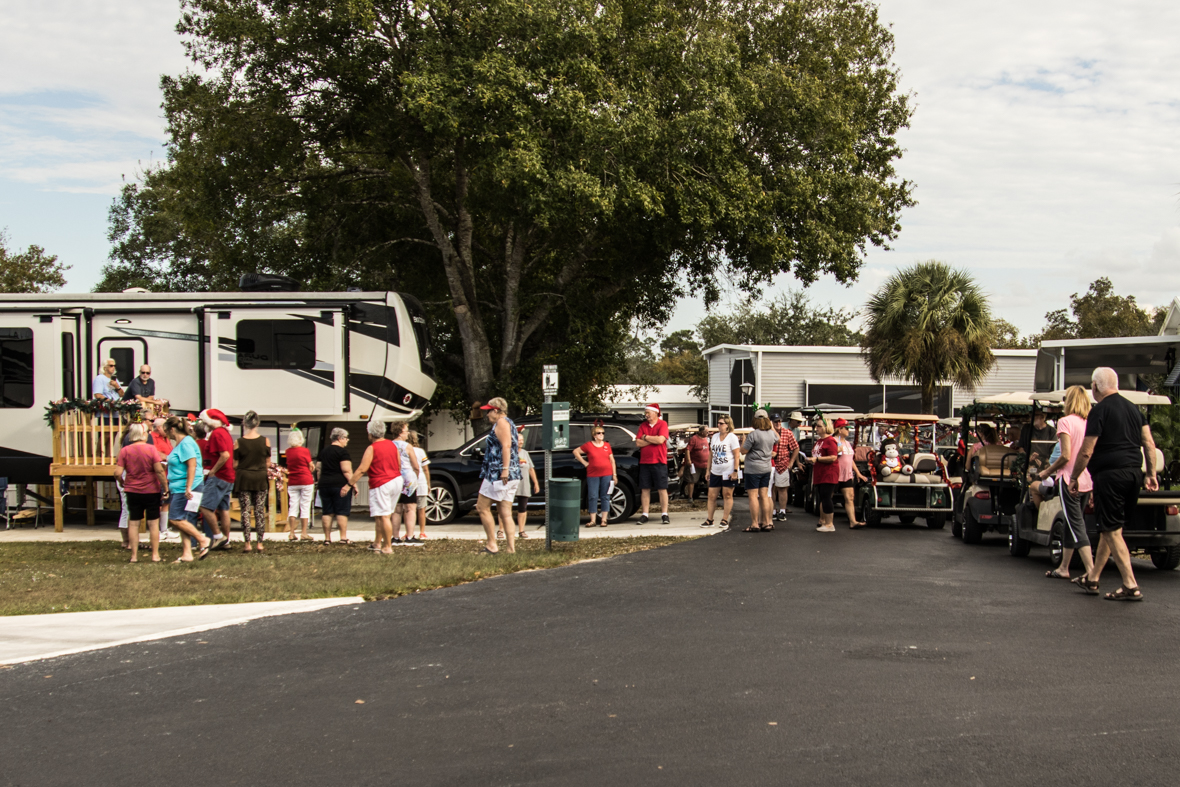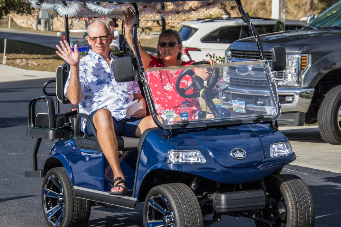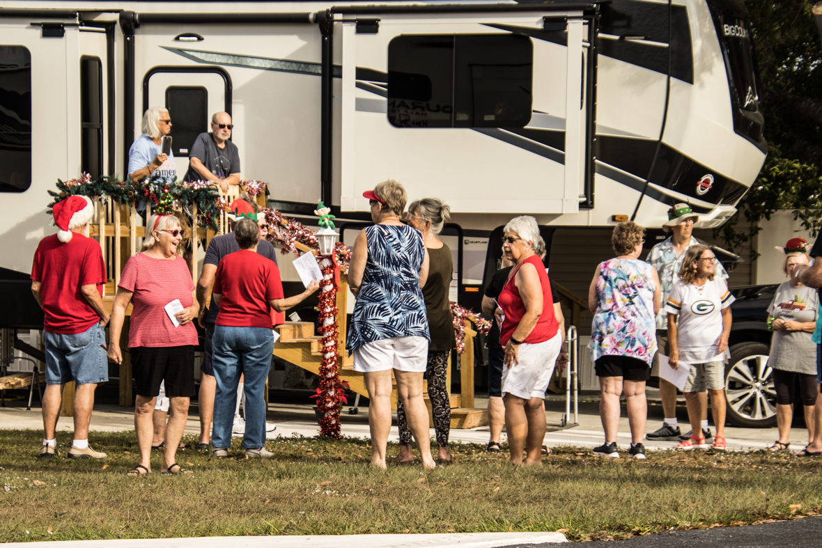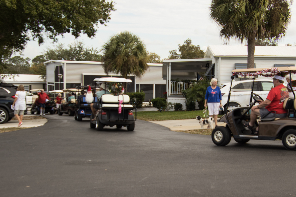 December 19th was a special day for Camp Florida! Many of our property owners and guests dressed up in their Christmas garb and decorated their golf carts to participate in the annual Christmas Caroling Parade. Songs of Christmas filled the air as these folks treated each circle to Christmas favorites, ending with “We Wish You a Merry Christmas.”