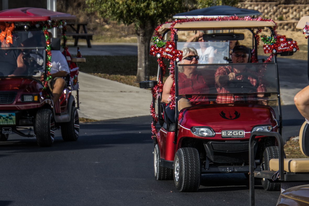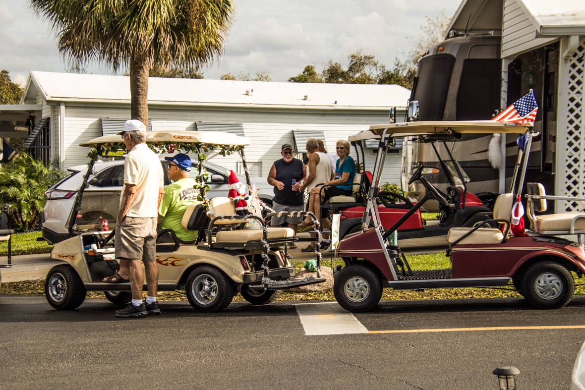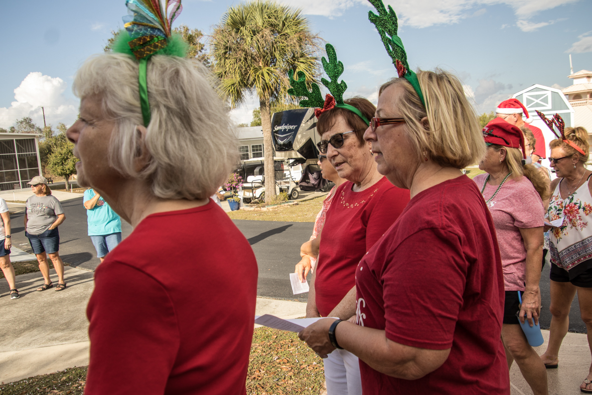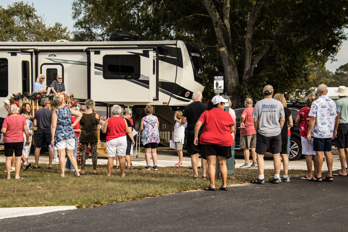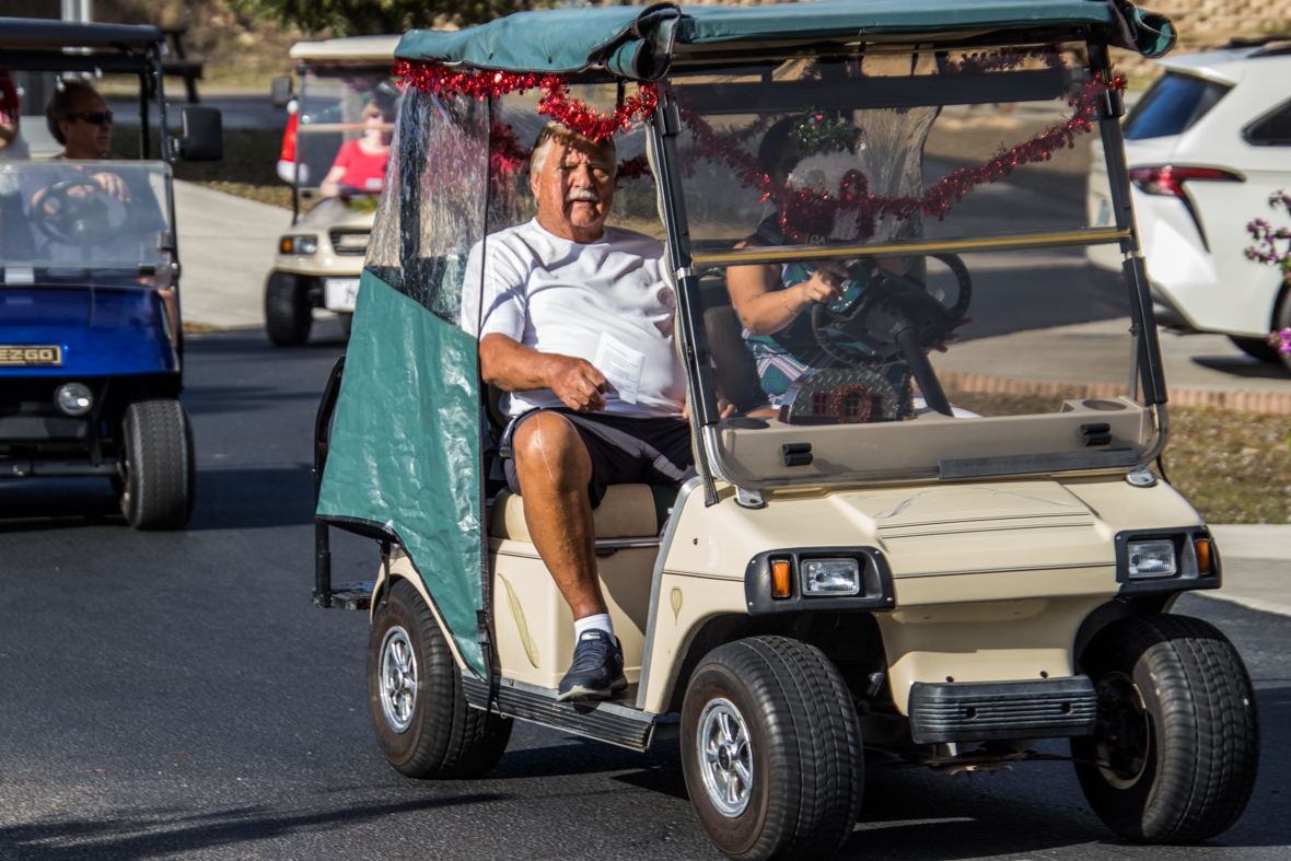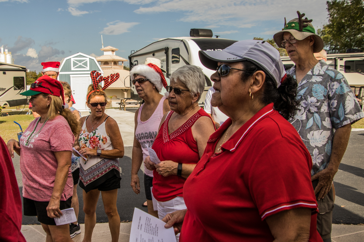 December 19th was a special day for Camp Florida! Many of our property owners and guests dressed up in their Christmas garb and decorated their golf carts to participate in the annual Christmas Caroling Parade. Songs of Christmas filled the air as these folks treated each circle to Christmas favorites, ending with “We Wish You a Merry Christmas.”
