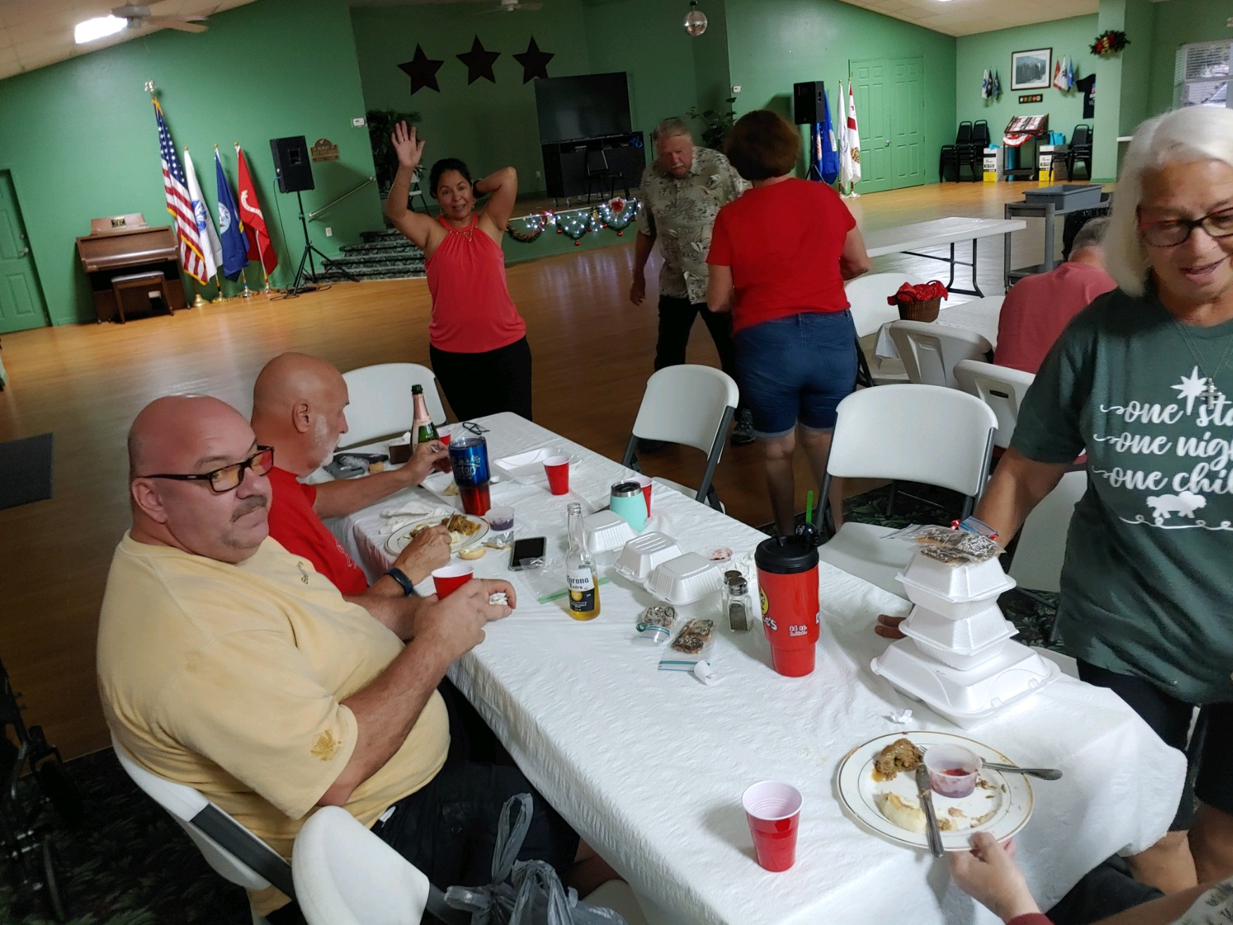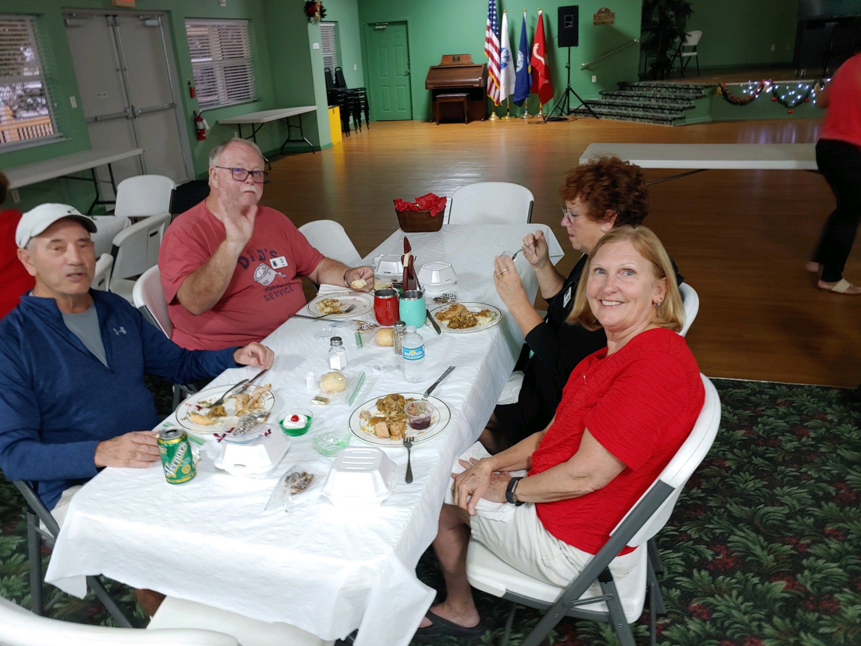 Christmas Dinner at Camp Florida was a hungry persons delight. It was a time for friends to gather together and enjoy each others company while enjoying a deliciously prepared meal. Over 150 tickets were sold for this years event. There was even time for a few smiles in between bites!