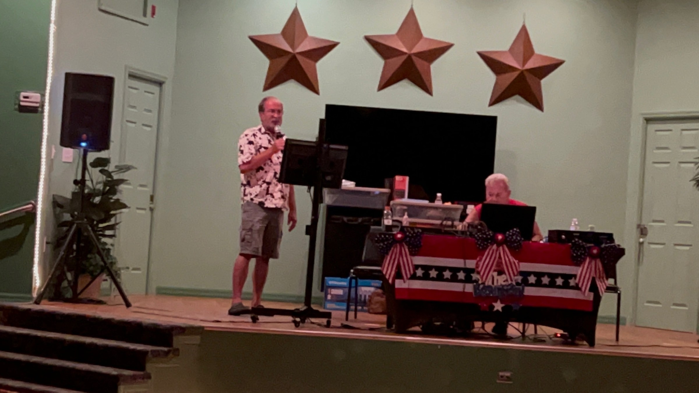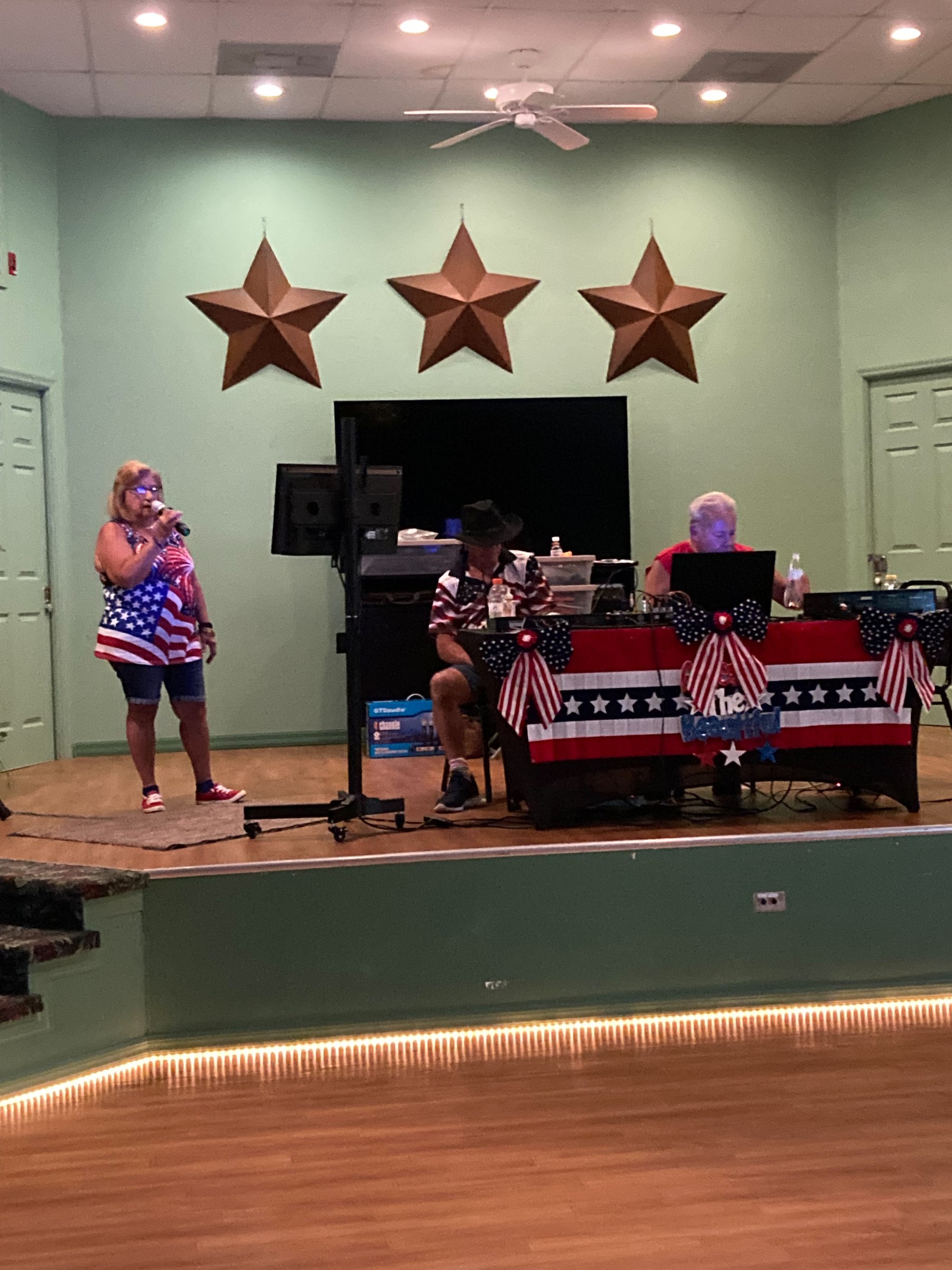 We would like to thank our CFR friends who took the time to come out and support our event. We had several good singers and we particularly enjoyed Marylou Wood and Marilyn Quigg who sang a beautiful rendition of “Take Me Home, Country Roads”. Mike Lowe led us in closing the show with God Bless the USA. A big thank you to Patti for sending out the flyer announcing the event and to Carol Delynko for posting the pictures.